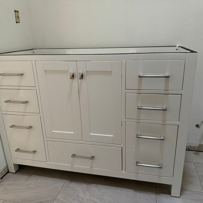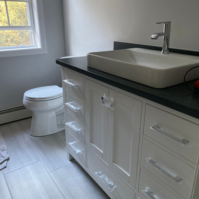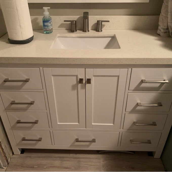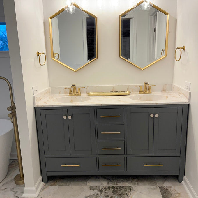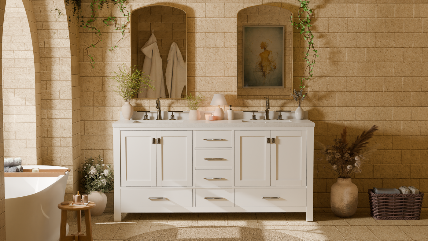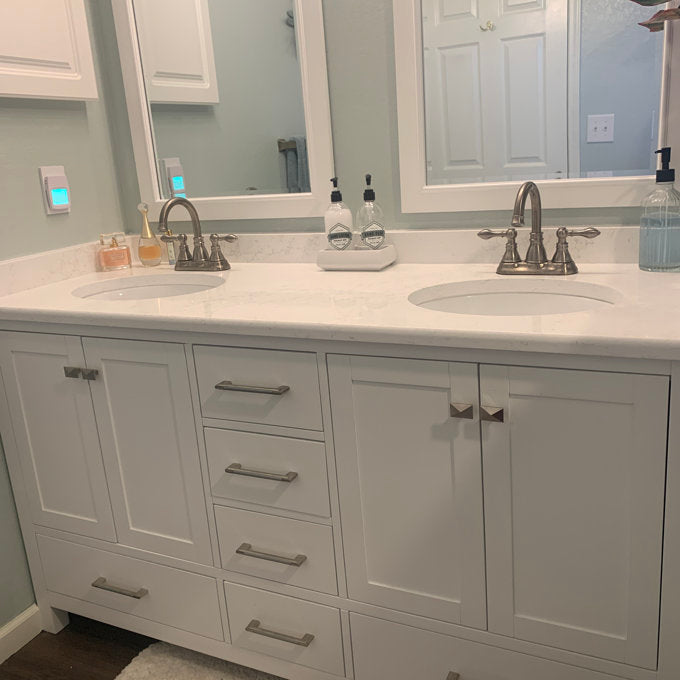 The Caroline Avenue Collection is inspired by refined simplicity and urban elegance. With its clean paneling, modern silver hardware, and sleek quartz surfaces, it brings a polished, upscale feel to both master and guest bathrooms