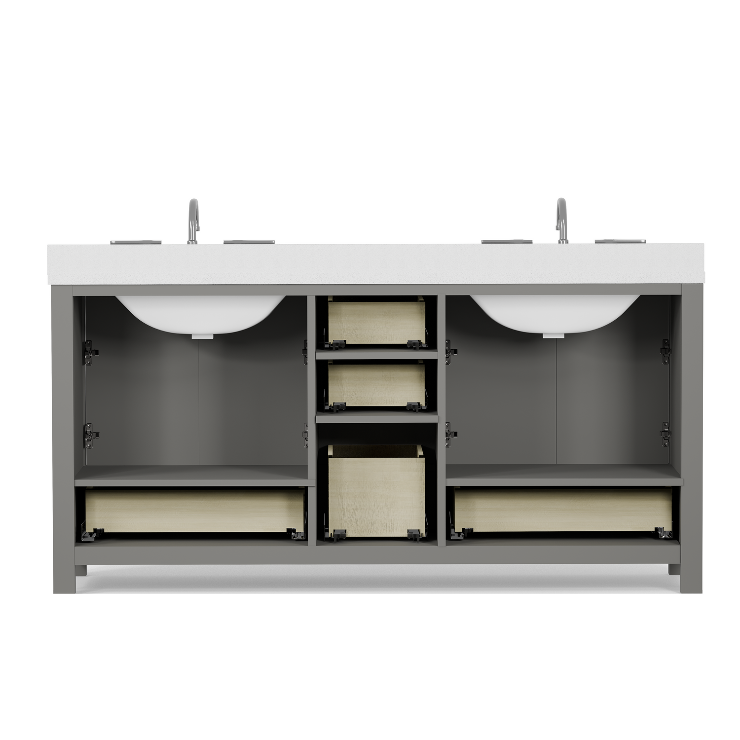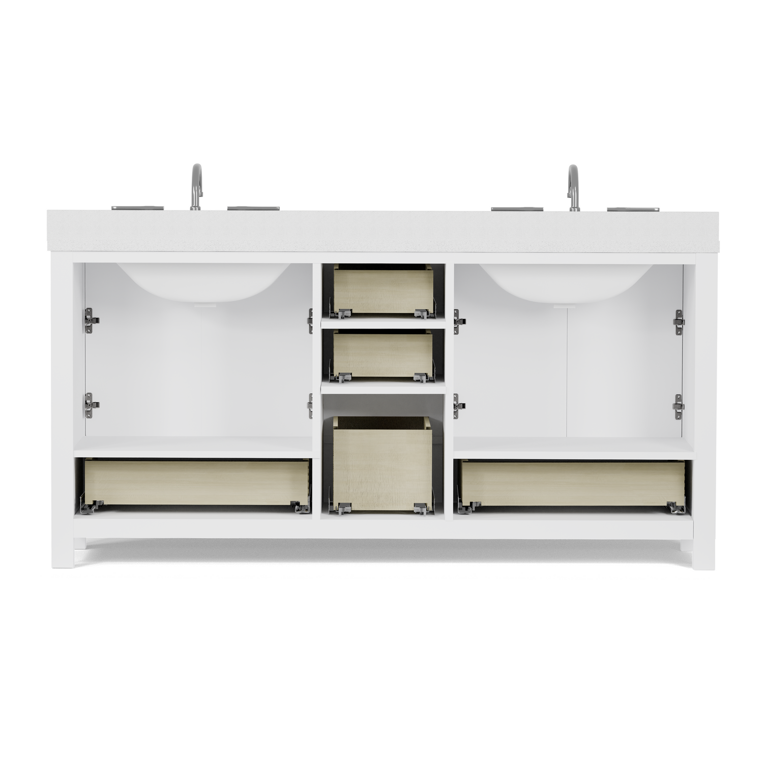 - Ample Storage Capacity: Equipped with six soft-close drawers and four cabinet doors, offering organized storage for linens, toiletries, and everyday essentials.