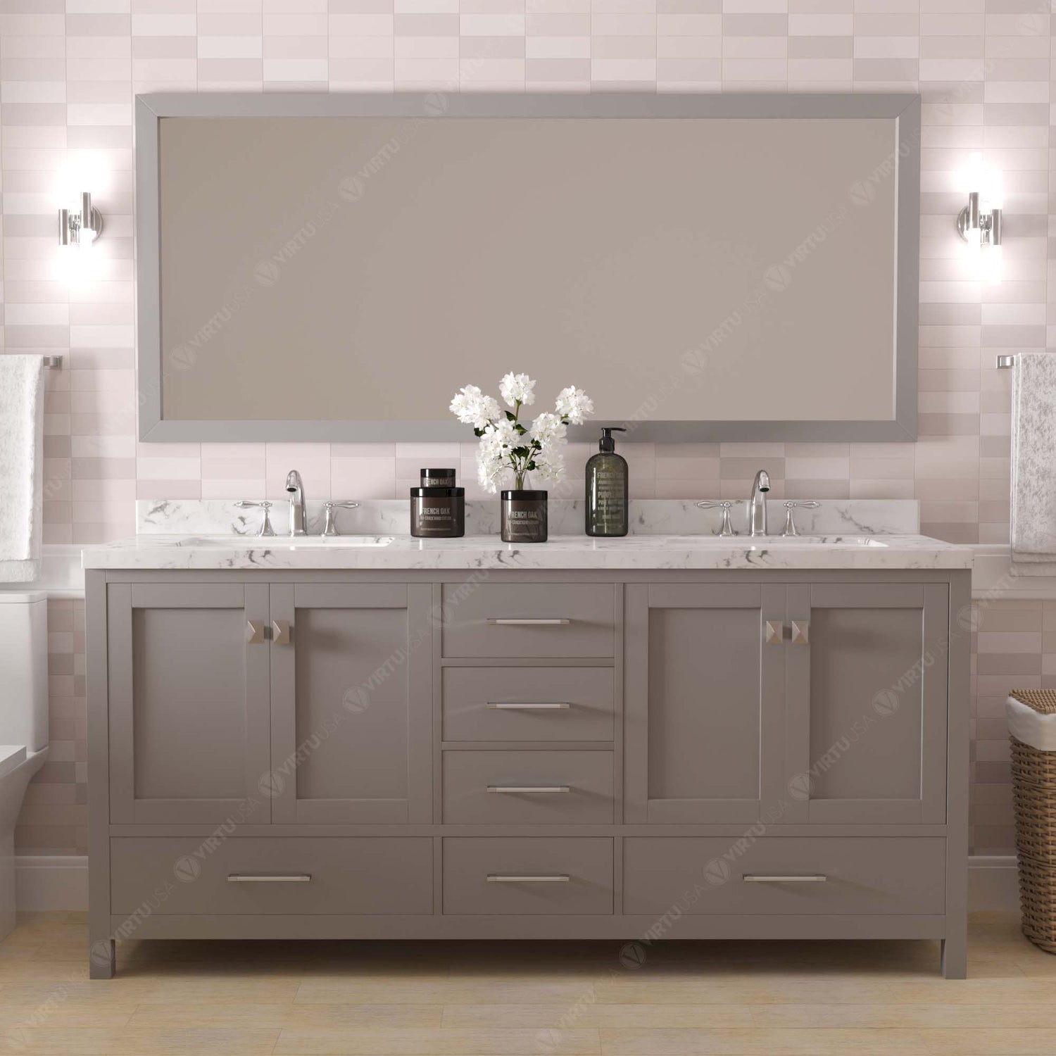 Caroline Avenue 72" Double Bathroom Vanity Cabinet with Sink and Cultured Marble Top